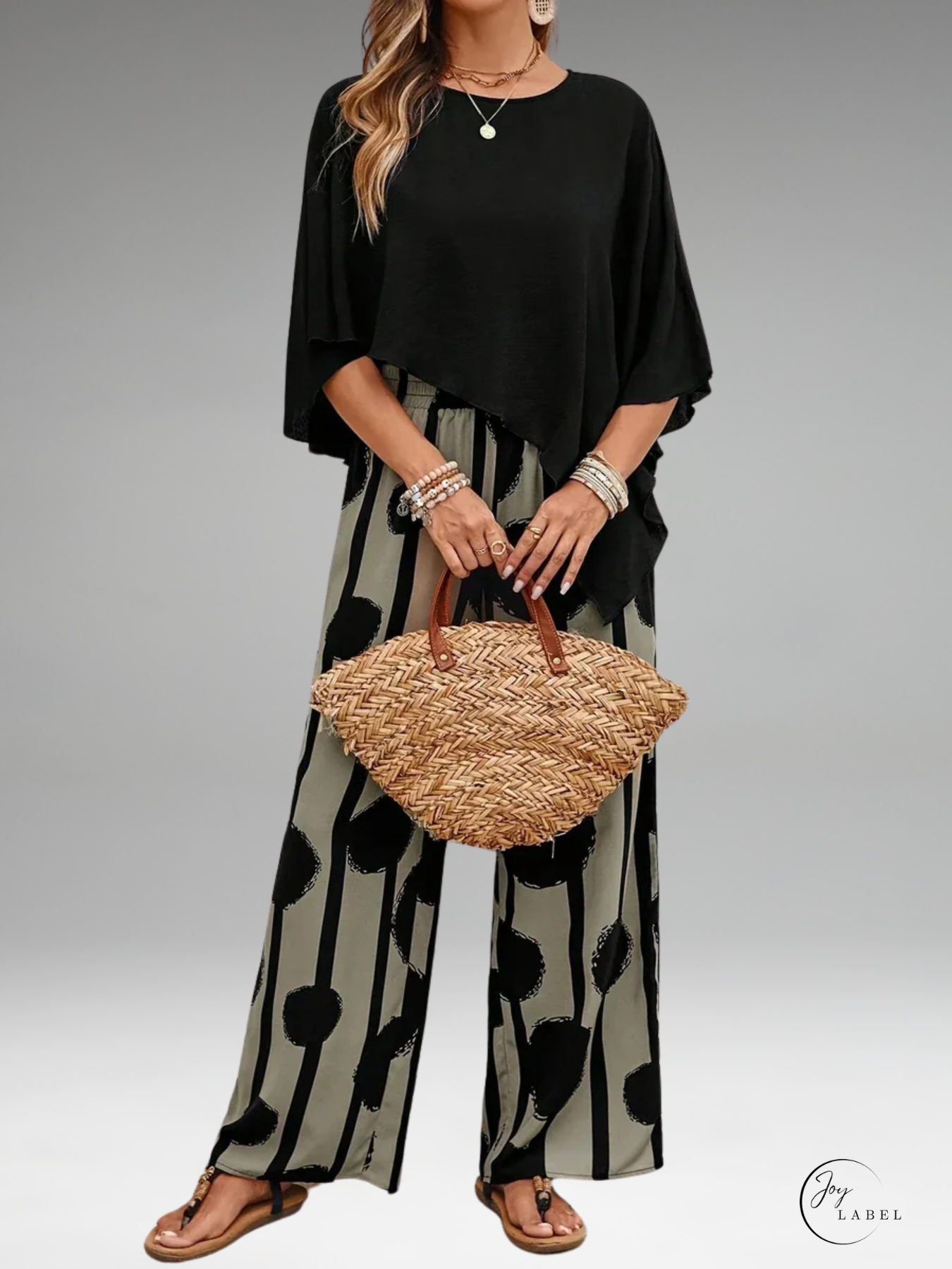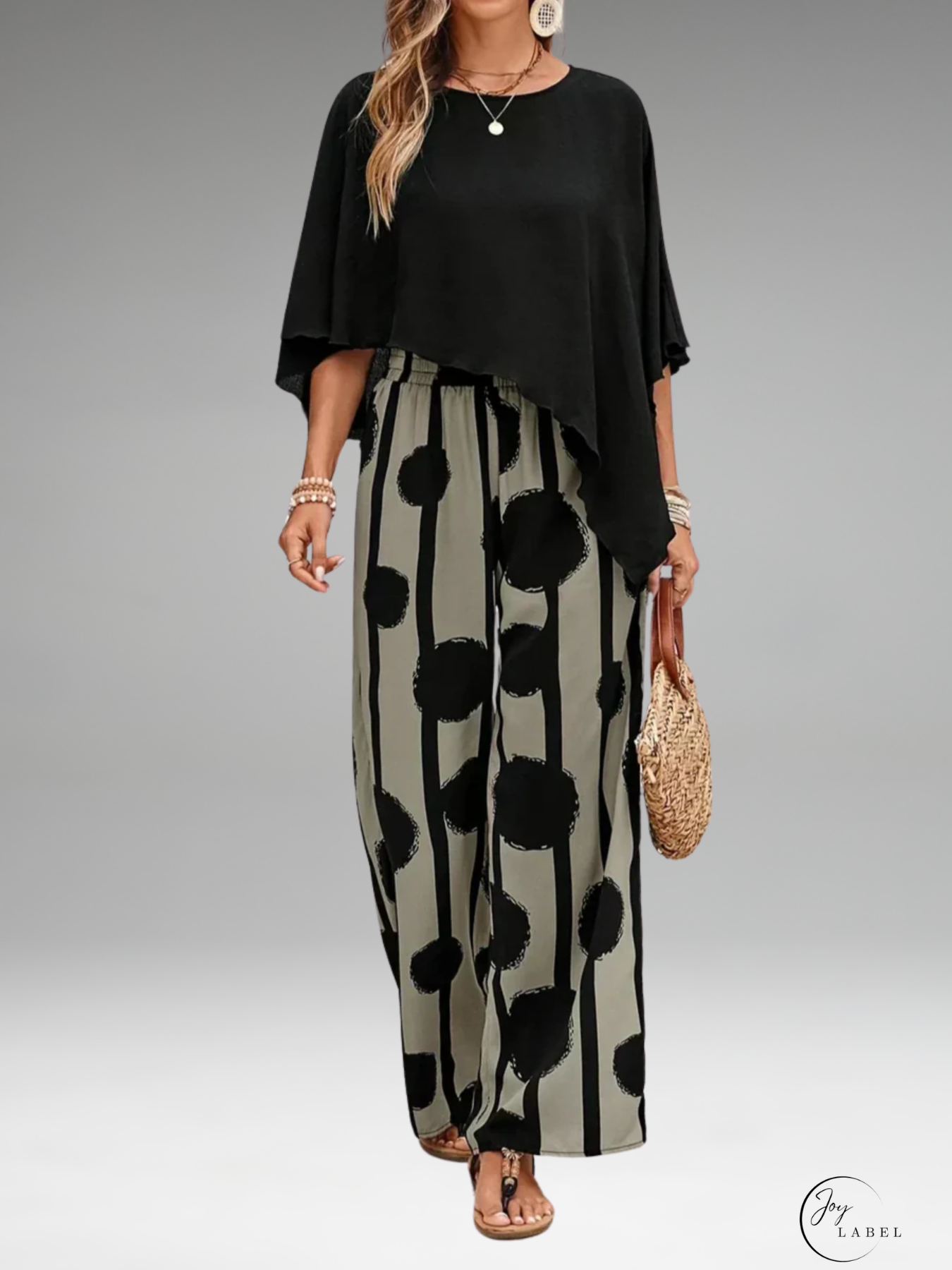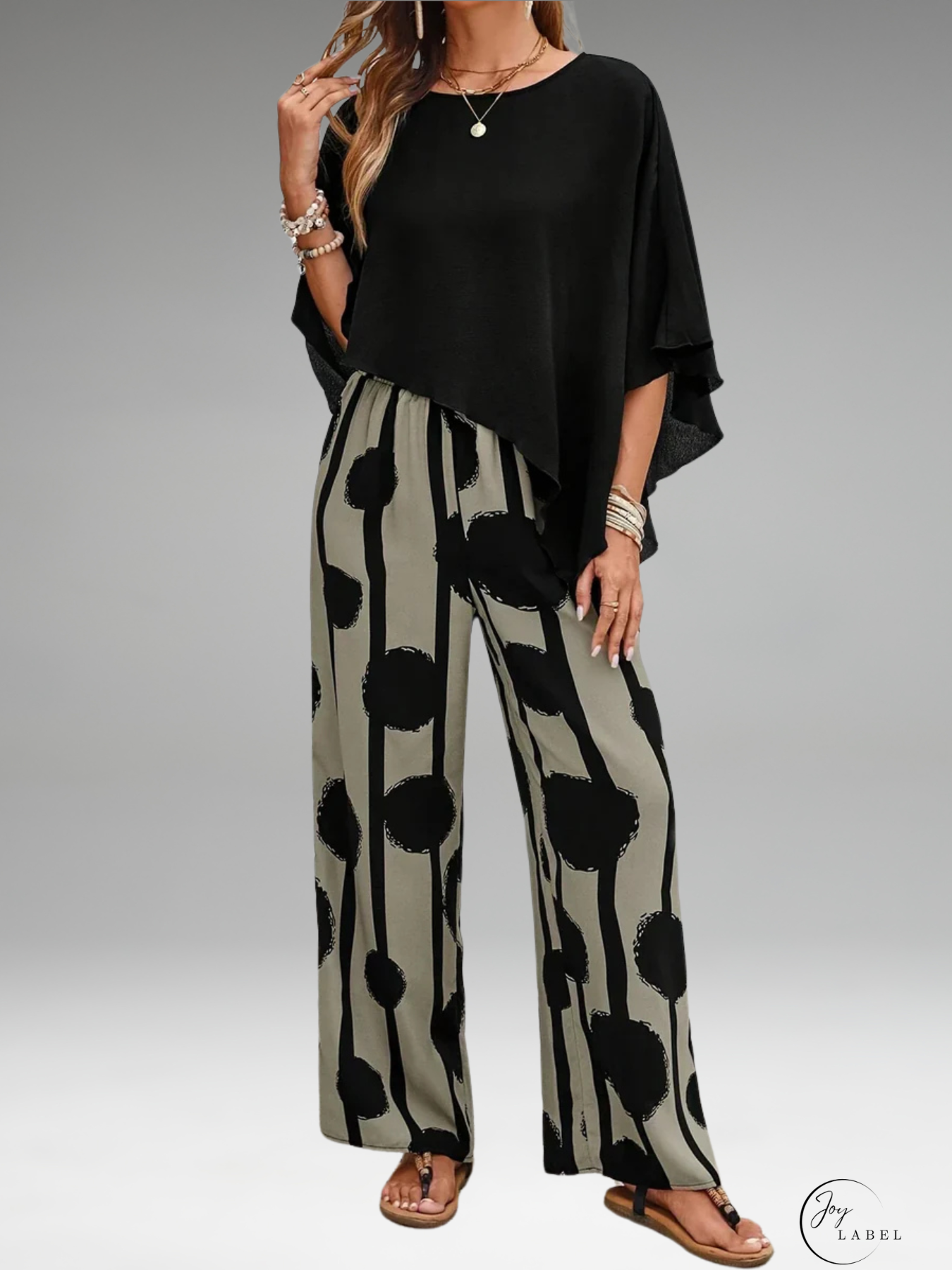 Mila | Haut asymétrique tendance pour femmes avec ensemble de pantalon à imprimé stylé