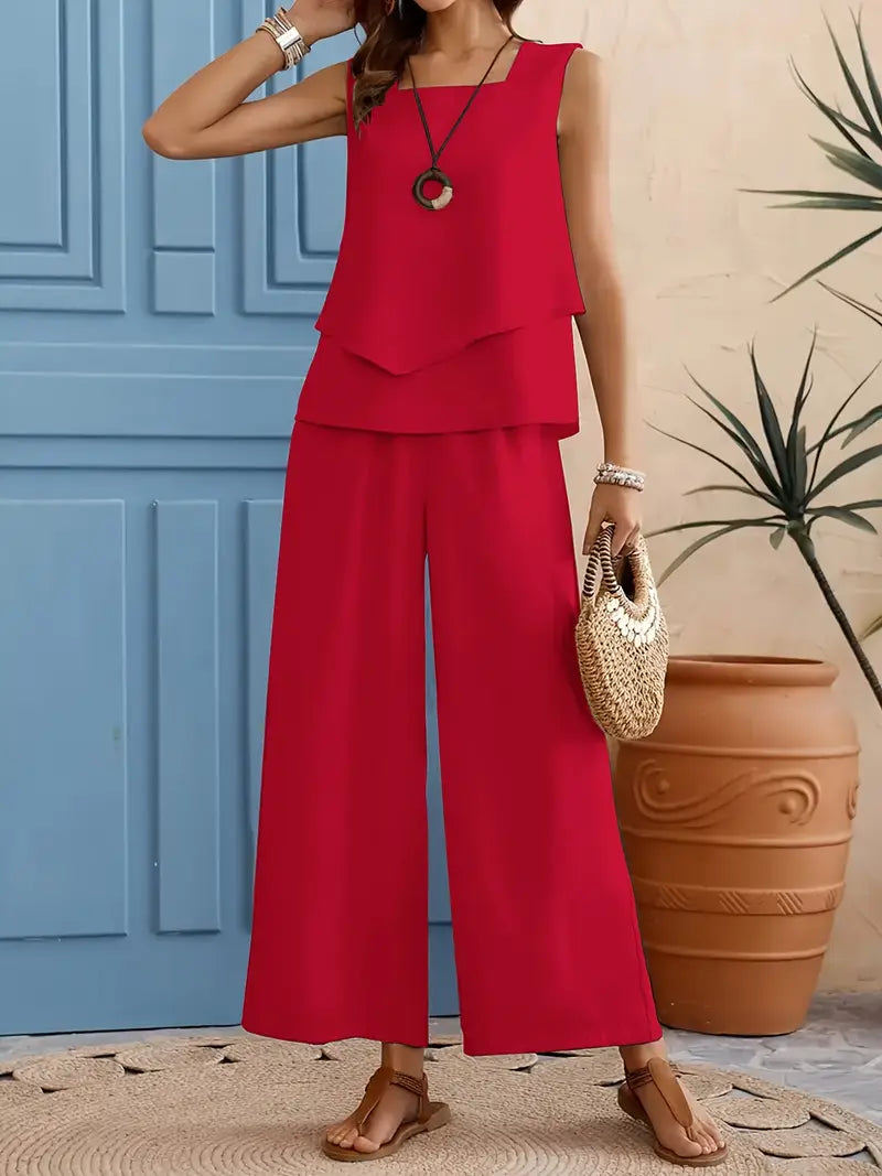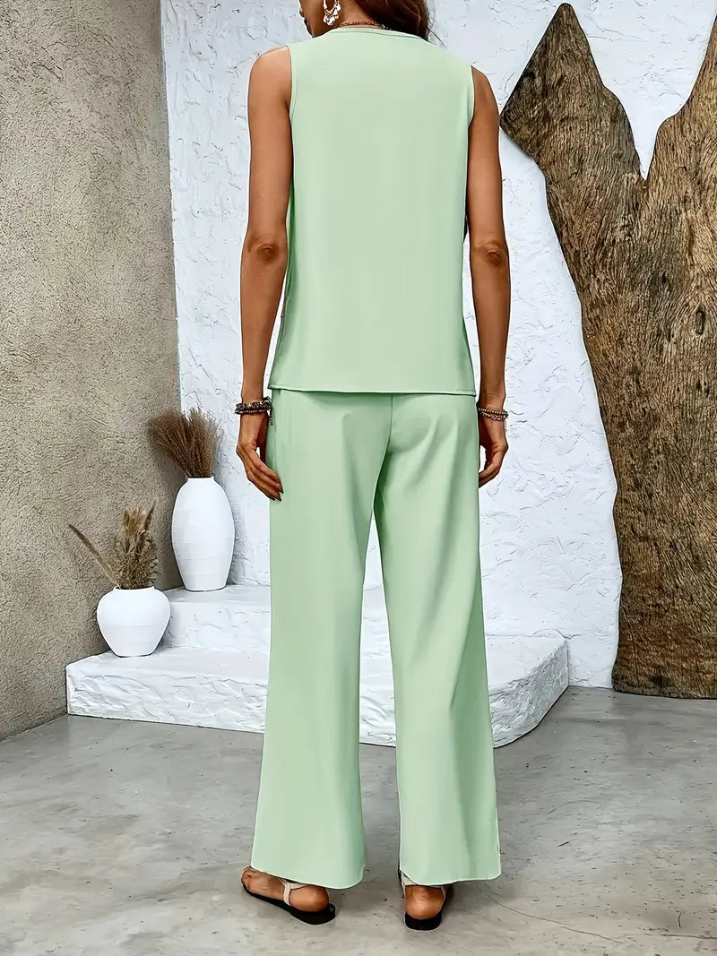 Chaque matin, la même question : qu’est-ce que je vais bien pouvoir porter ? Zélie est la solution. Ce duo chic – un haut sans manches fluide et un pantalon long assorti – vous habille en une seconde. Léger, flatteur et agréable à porter, il vous accompagne avec style du brunch à la soirée.